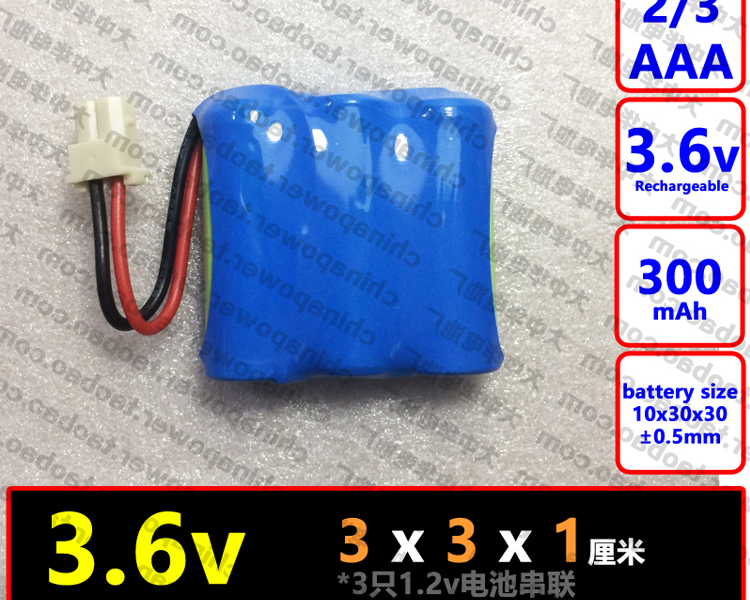 带插头 2/3AAA 300mAh 3.6v 无绳电话子母机 可充电电池组