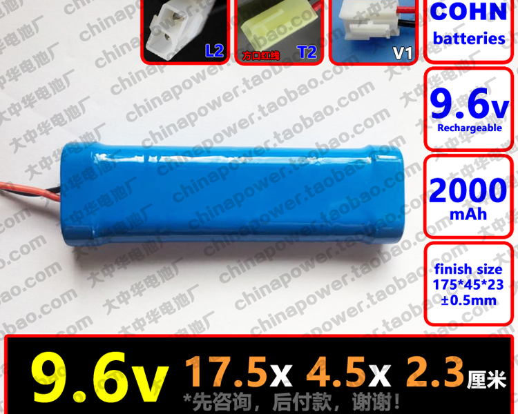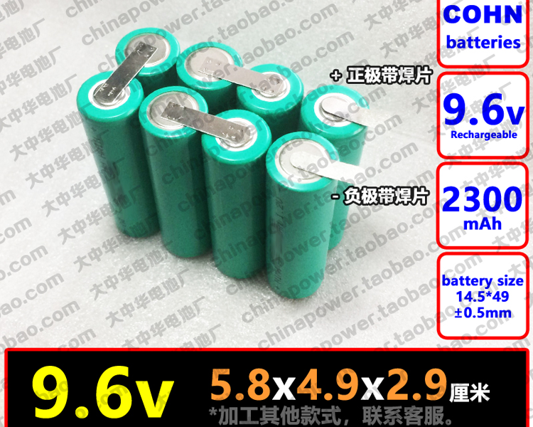 可充电 NIMH AA 2300mAh 9.6v COHN5号电池组 2x4替换电芯