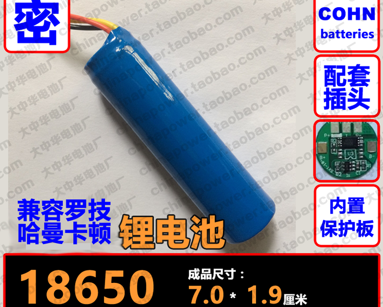 三线插头18650 3.7v 2600mAh 锂电池 兼容罗技哈曼卡顿迷你音箱