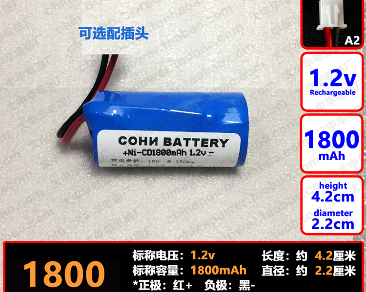 带线 可充电 Ni-Cd 1800mAh 1.2v 应急灯用电池组