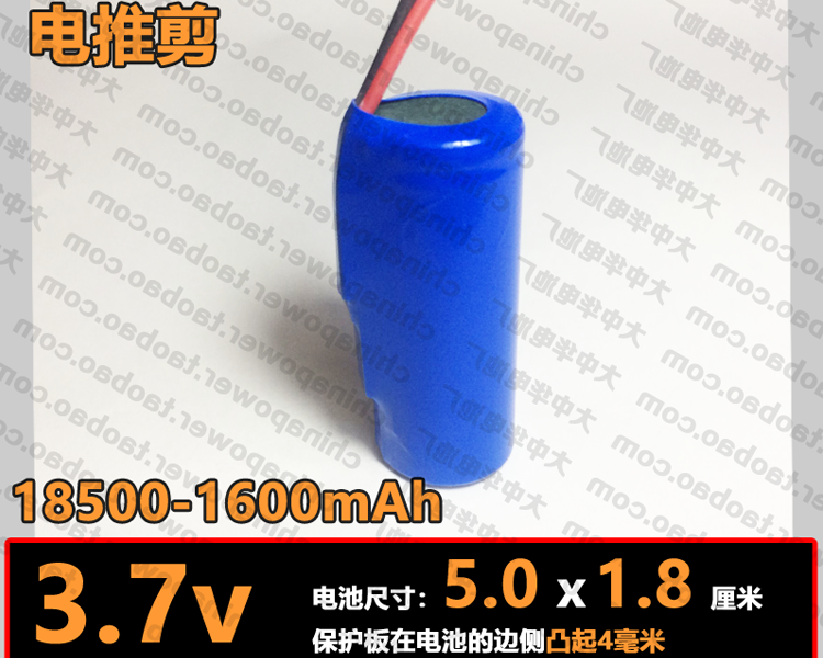 带线 li-ion 18500 3.7v 1600mAh 可充电电推剪锂电池