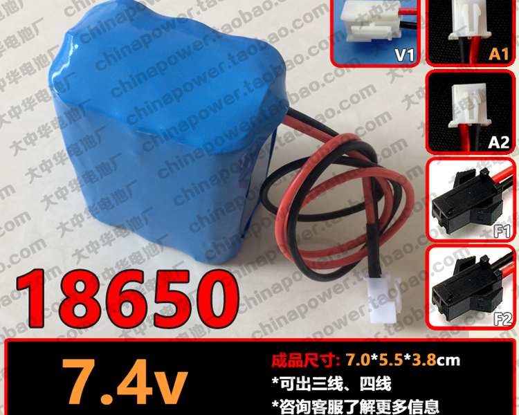 可充电 7.4v 6600mAh 3并2串6支18650锂电池组包