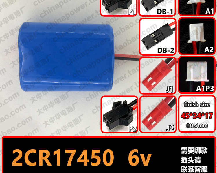 带插头 2CR17450 6v 智能水表电表煤气表专用电池