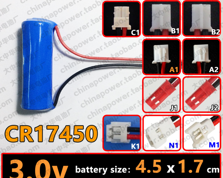 带插头 CR17450E 3.0v 智能水表电表煤气表专用电池