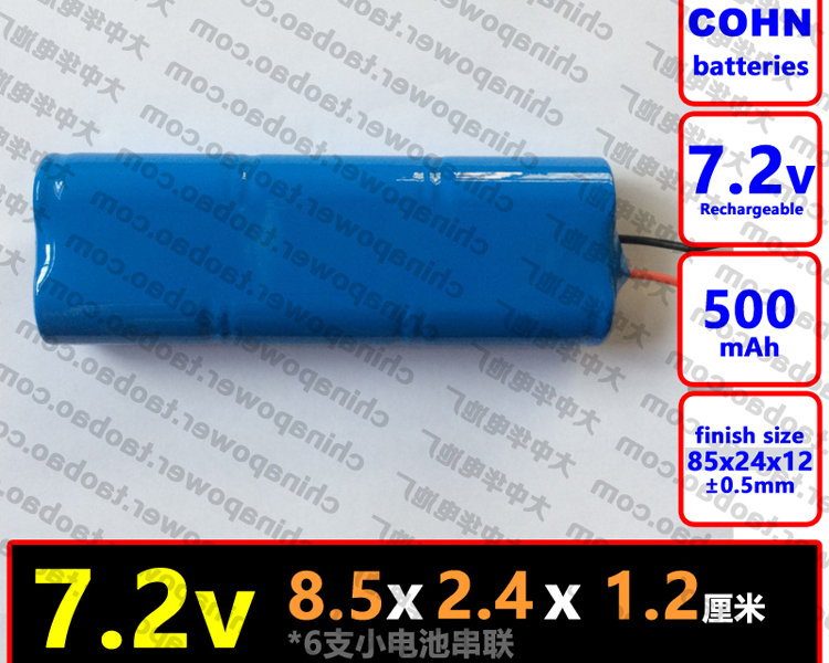 Ni-MH 2/3NP 500mAh 7.2v 可充电电池组