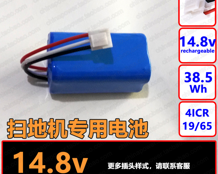 三线插头12.8Vdc 1300mAh 16Wh 铁锂电池 适用于部分飞利浦扫地机