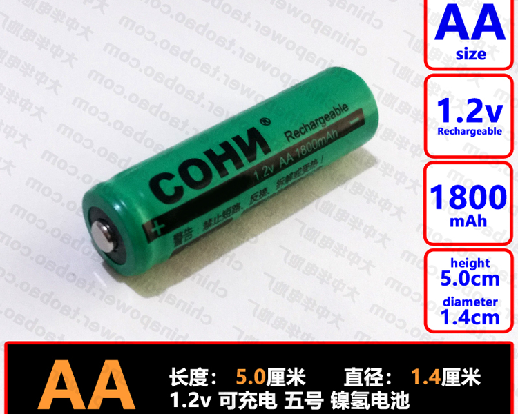 1件1支 尖头 可充电 Ni-MH AA 1.2v 1800mAh 5号COHN仪器设备电池