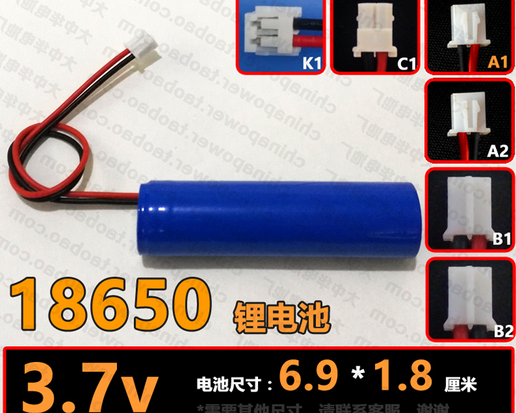 圆柱18x69mmA1插头 可充电COHN 18650 2200mAh 3.7v 锂离子电池组