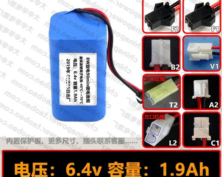 8W放电90min锂电池组 电压6.4v 容量1.9Ah COHN耐高温锂离子电池