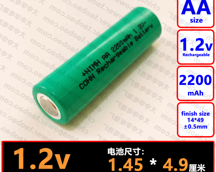 NI-MH AA 1.2v 2200mAh COHN5号平头工业镍氢可充电电池