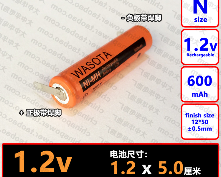 1件1支 带焊脚 NIMH N600mAh 1.2v 可充电电池 尺寸12x50mm
