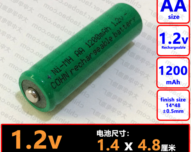 1件1支 NI-MH AA 1200mAh 1.2v 工业仪表 COHN5号镍氢可充电电池