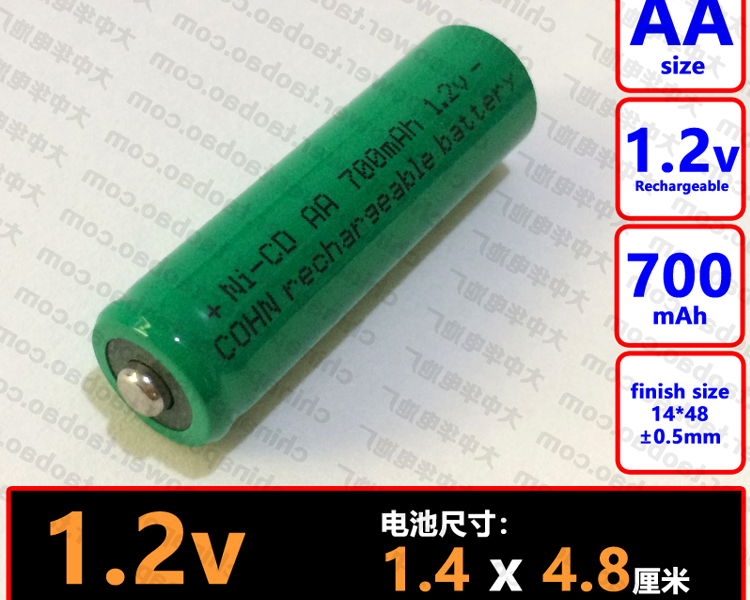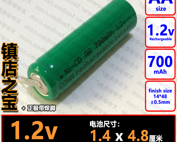 1件1支 带焊脚 NI-CD AA 700mAh 1.2v COHN镍镉平头5号可充电电池
