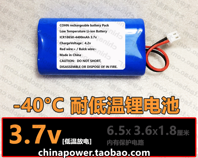 3.7v 4400mAh 耐低温18650锂电池COHN零下40度低温电池-40°C放电