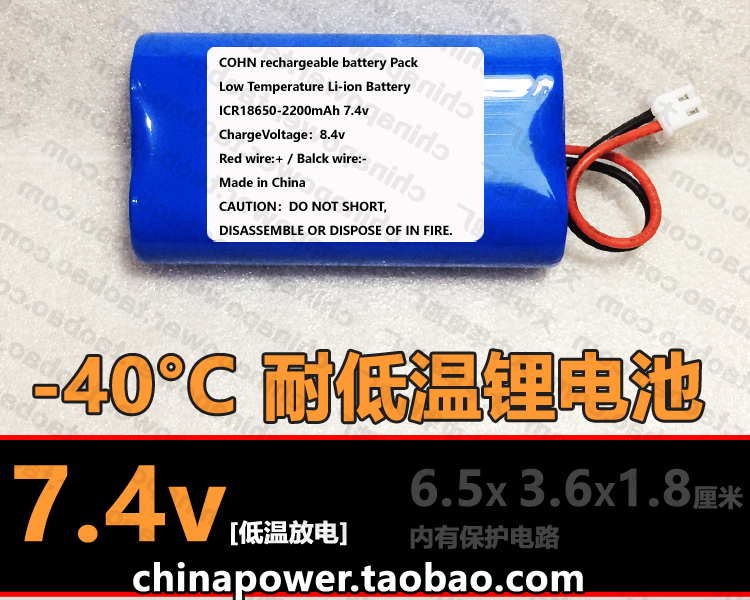 COHN 7.4V 2.2AH 零下40度低温电池 -40°C放电耐低温18650锂电池