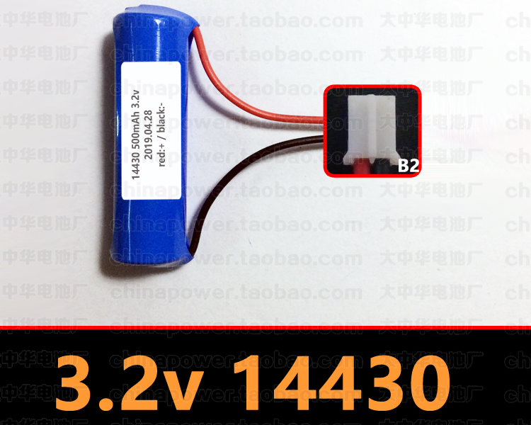 B2插头 14430 500mAh 3.2v COHN可充电锂电池 碟刹锁专用款