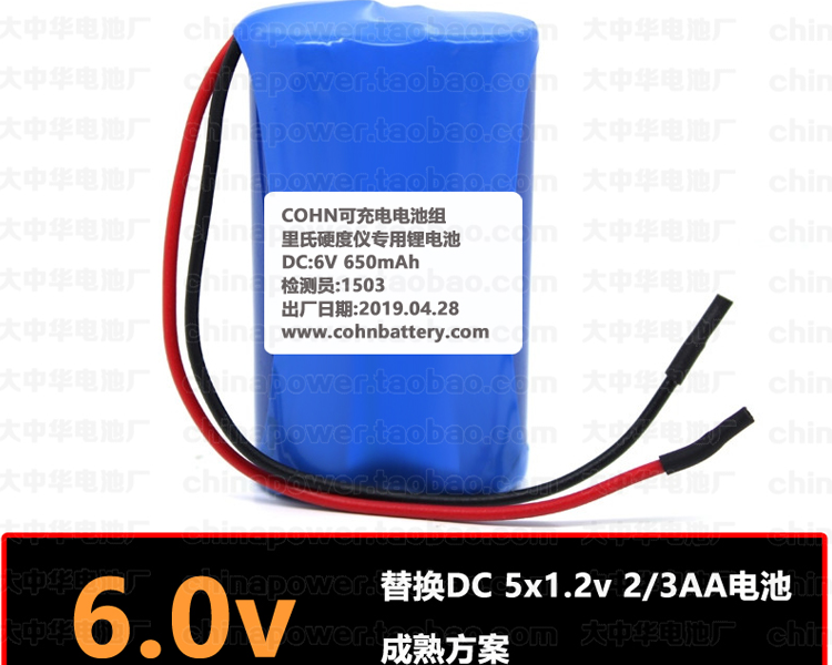 可充电 6.0v COHN锂电池组 里氏硬度计TH110 120 140 5300 等适用