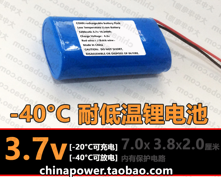 3.7v 5200mAh COHN耐低温锂离子电池 零下40度-40°C放电低温电池