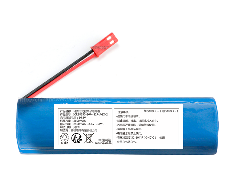 可充电式锂离子电池组 ICR18650-26J-4S1P-AGX-2 14.4v 36Wh 2500