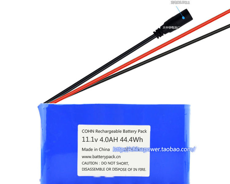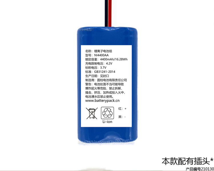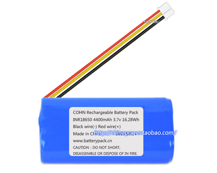 三线插头 可充电锂电池 18650 4400mAh 3.7v 16.28Wh