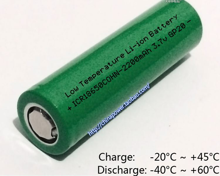 耐低温锂离子电池 -40℃放电 COHN军工可充电18650 2200mAh 3.7v