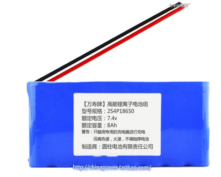万寿牌 高能锂离子电池 规格型号2S4P18650 额定电压7.4v 容量8Ah