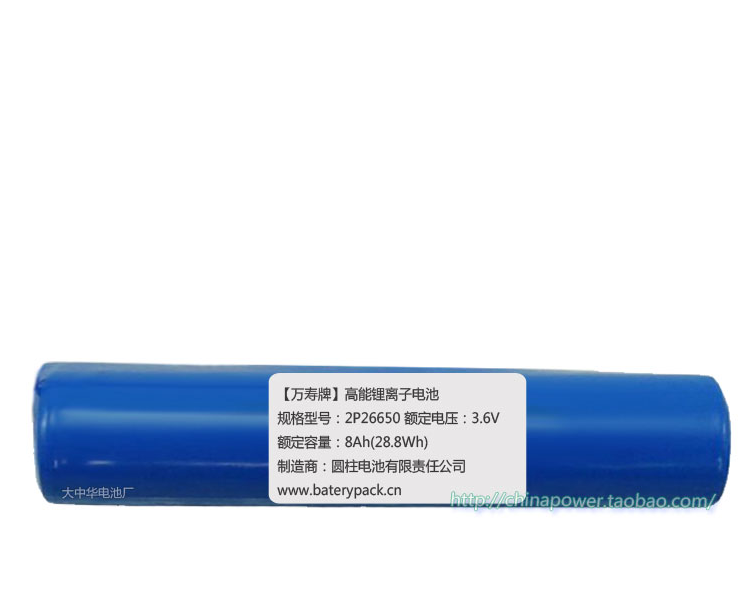 两端双环 高能锂离子电池 2P26650 3.6v 8Ah 28.8Wh 强光手电筒用