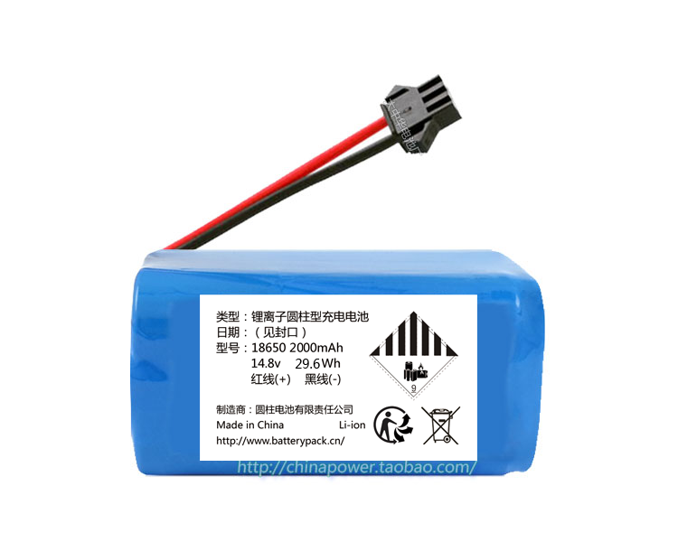 14.8v 29.6Wh 锂离子圆柱型充电电池 18650 2000mAh