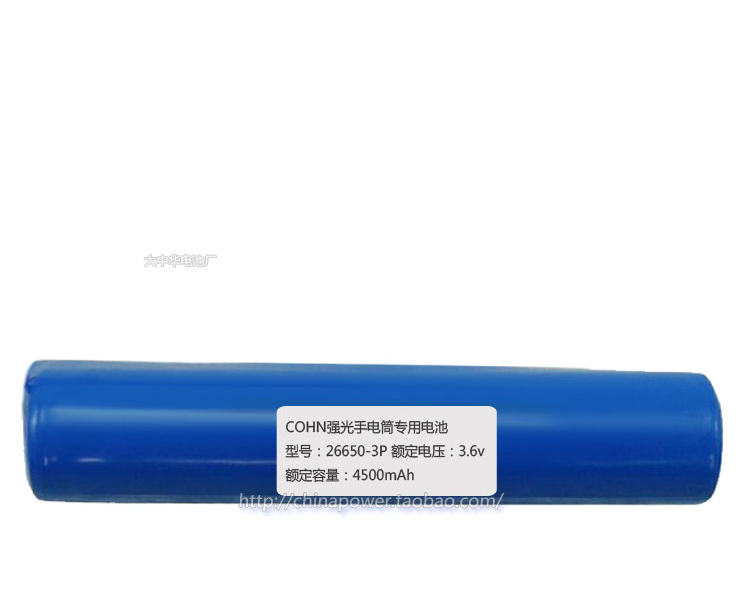 COHN强光手电筒电池 直径27mm长度195mm 3.6v 4500mAh 26650-3P