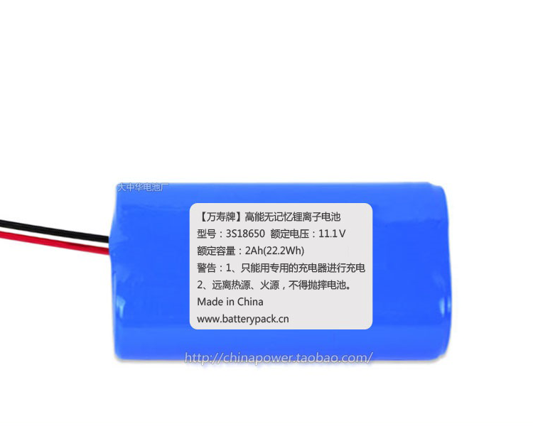 万寿牌高能无记忆锂离子电池 型号3S18650 11.1V 2Ah 22.2Wh