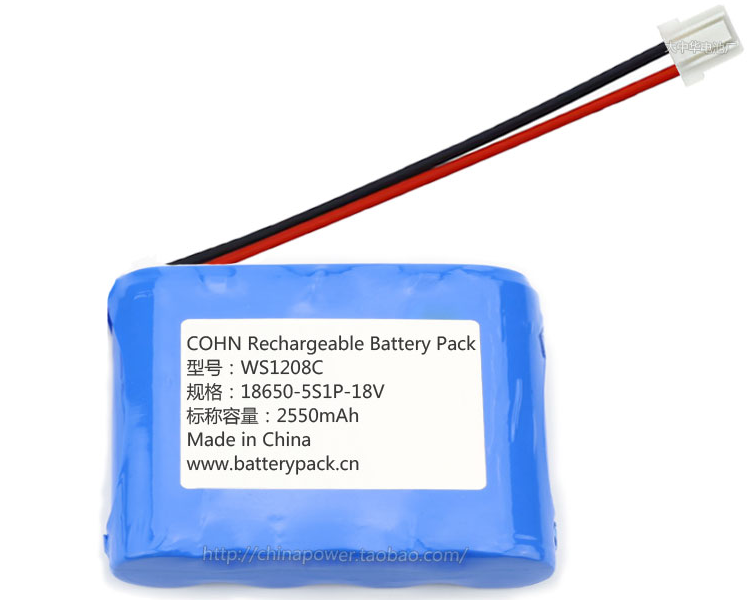 WS1208COHN 18650-5S1P-18v 2550mAh 可充电锂电池组