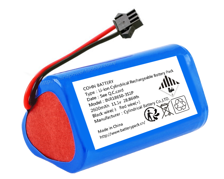 INR18650 3S1P 2600mAh 11.1v 28.86Wh COHN扫地机专用锂电池组