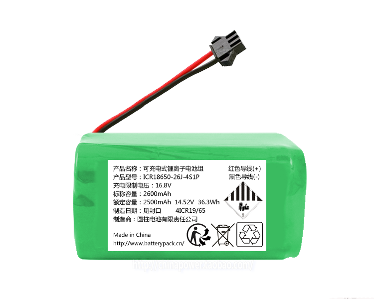14.52V 36.3Wh 2500 2600mAh ICR18650-26J-4S1P 可充电锂电池组