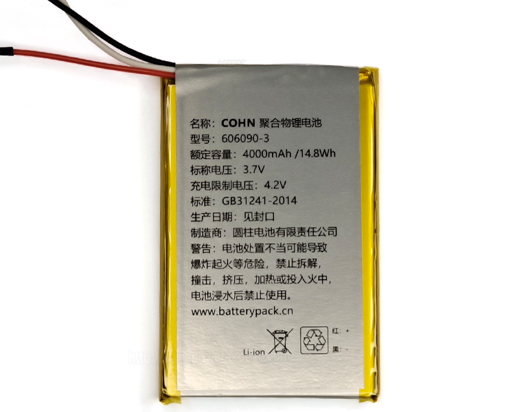 COHN聚合物锂电池 606090-3线 4000mAh 3.7V 4.2V 充电电池1块