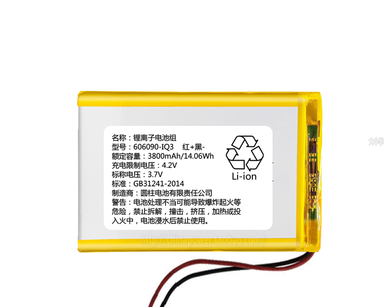 锂离子电池组 606090-IQ3 3800mAh 14.06Wh 4.2V 3.7V COHN可充电
