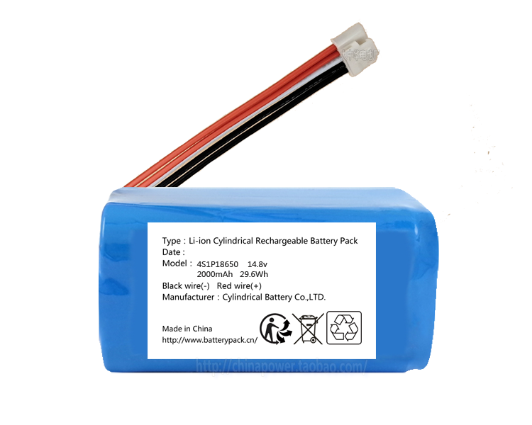 五线插头 4S1P18650 14.8V 2000mAh 29.6Wh COHN可充电锂电池组