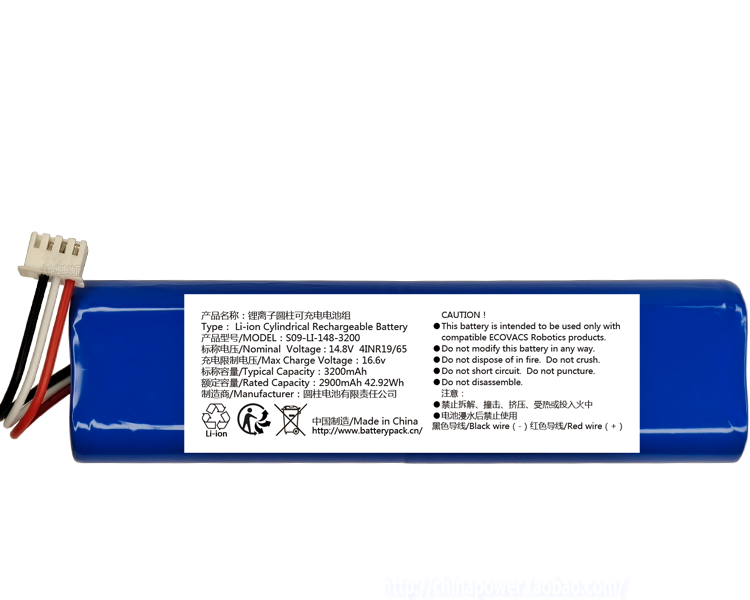 S09-LI-148-3200 14.8V 2900mAh 42.92Wh 锂离子圆柱可充电电池组